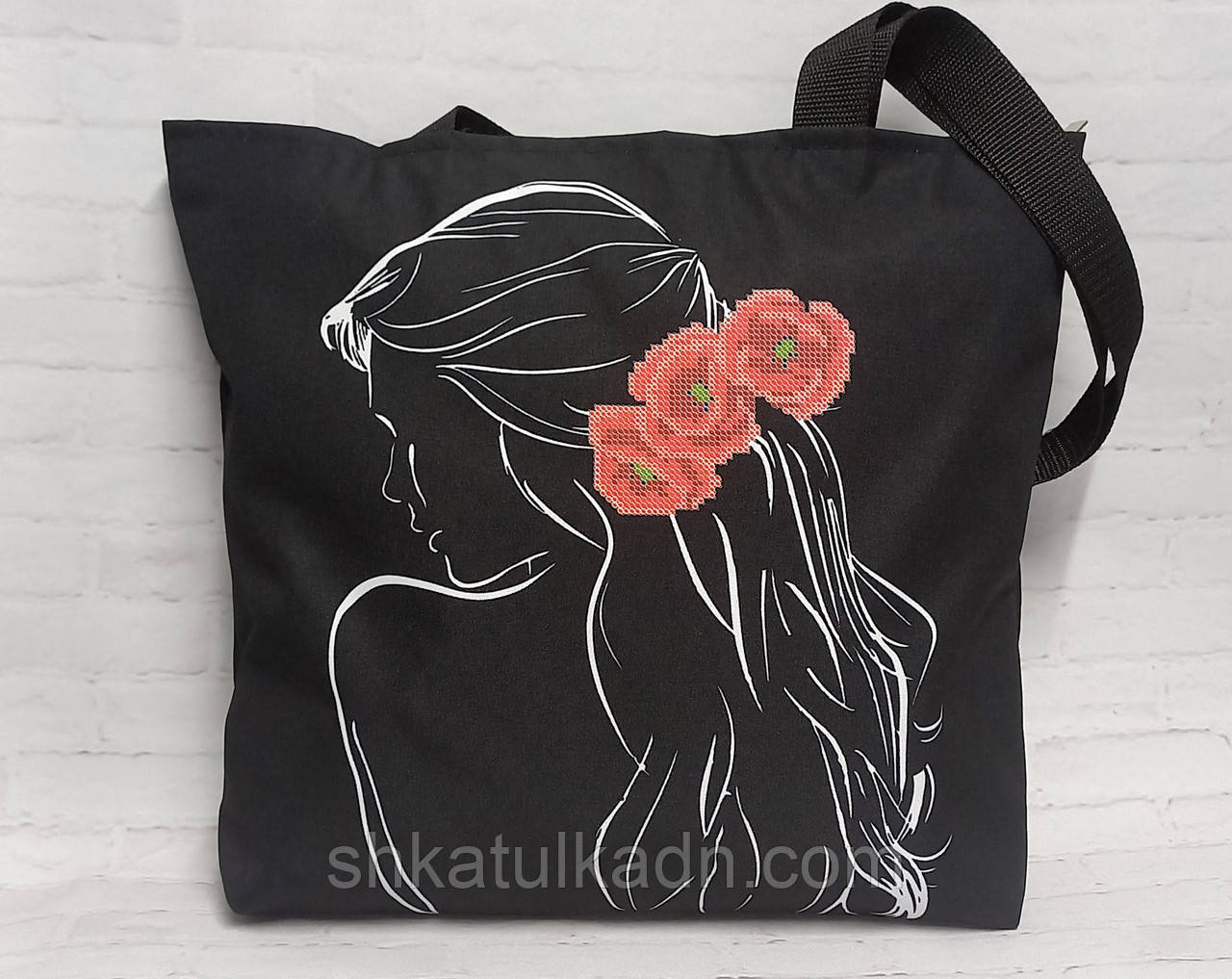Пошита сумочка. Характеричний пошиття виробів; - є підкладка всередині; -рсумка пошита на одне відділення; - тканина - габаорд (підклеєна флізельним) або оксфорд (палаточна, водовідштовхуюча) - макет розміщується на одній стороні сумочки. -розмір: ширина - 36 см Висота - 33 см. Ширина дна сумки: 6см. Повна довжина ручок - 60 - (2) - з ремінної стрічки (дуже міцна)